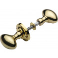Plain Victorian Oval Door Knobs on a Face Fix Rose. Suffolk Polished Brass.